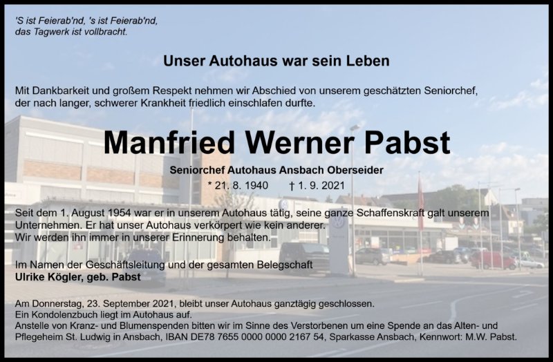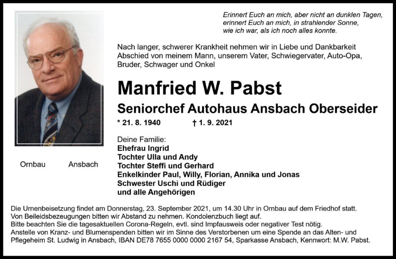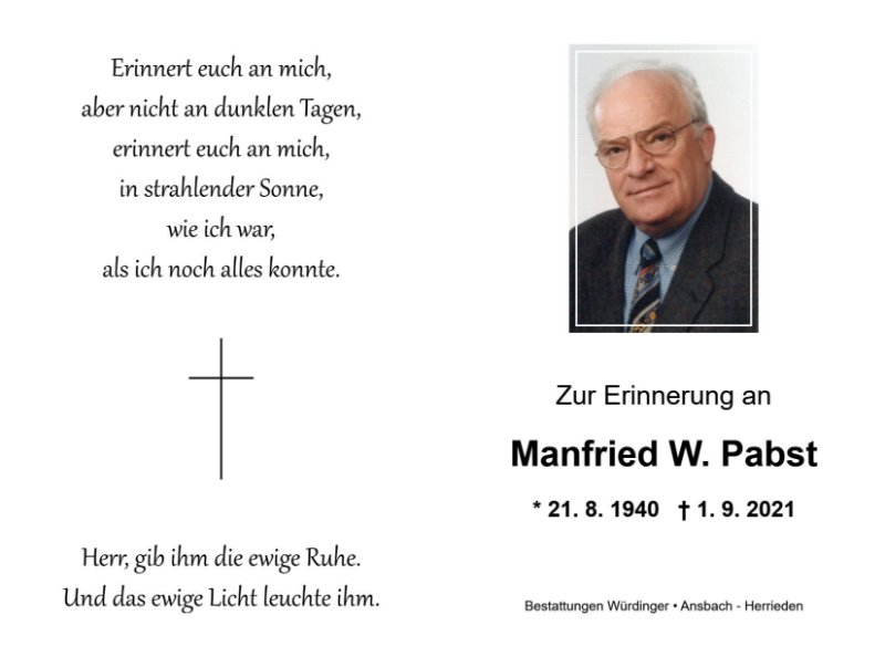Manfried W. Pabstgestorben am 1. September 2021